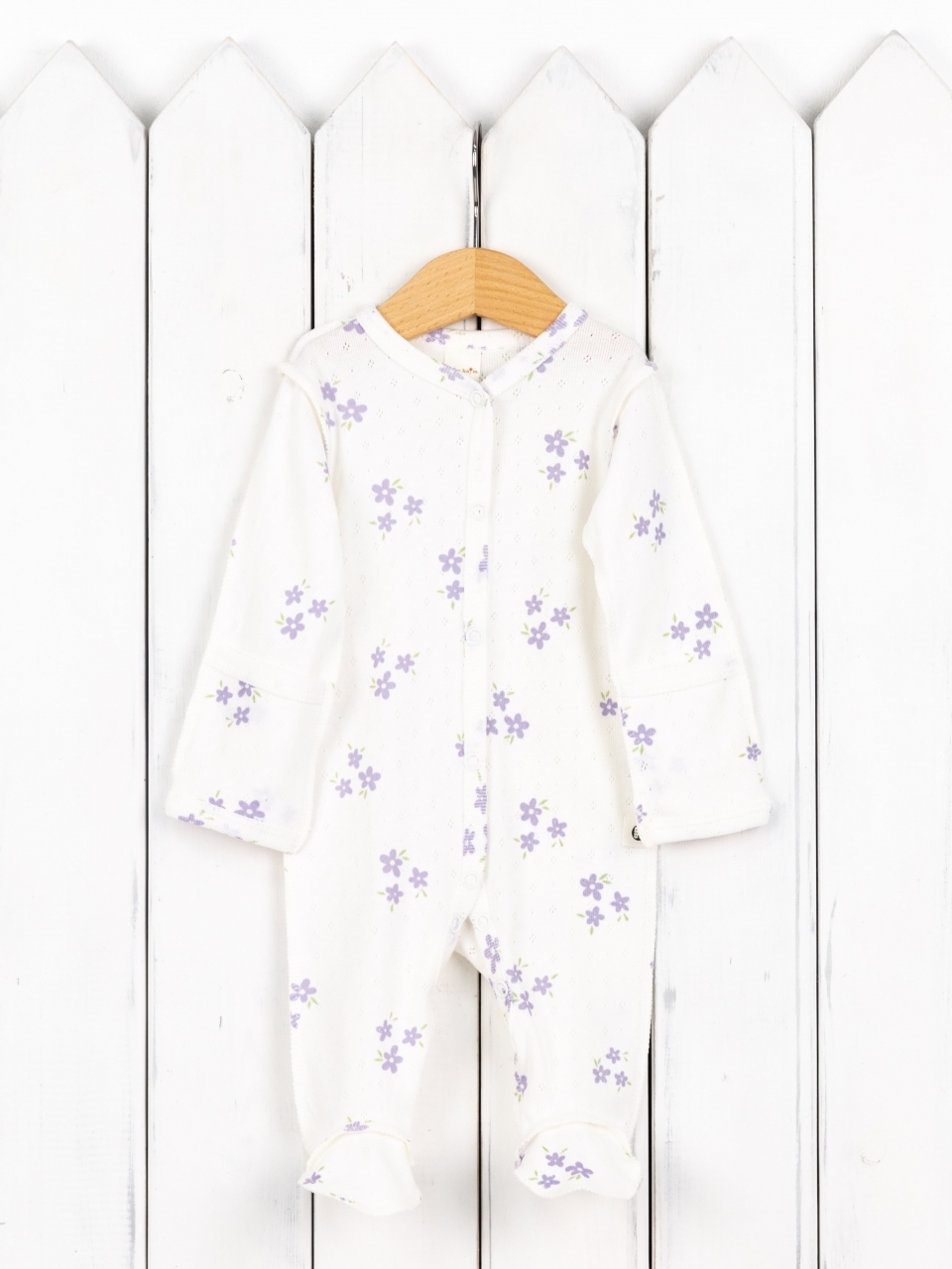 Комбинезон из ажурной рибаны- премиальной хлопковой ткани. Идеально для выписного варианта, а также на первые месяцы жизни.