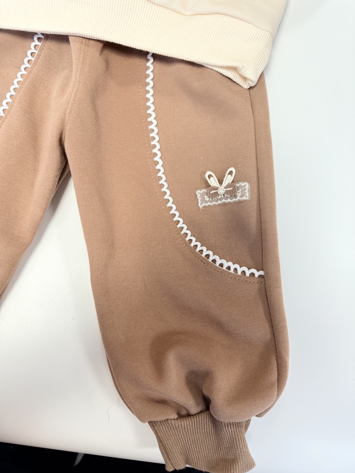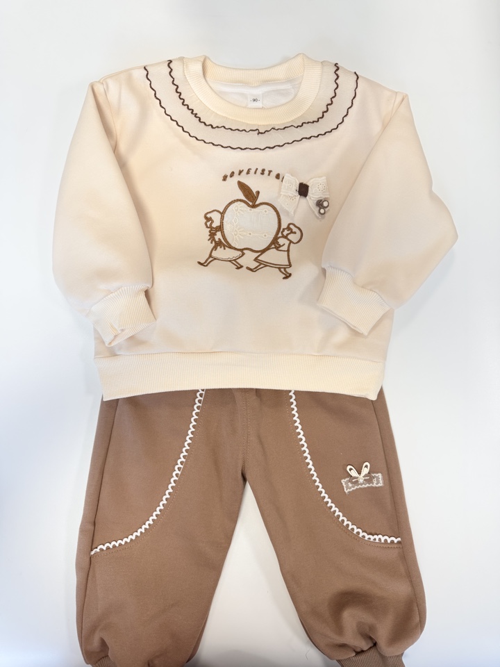 Костюм из бархатистого хлопка для девочки с вышивкой