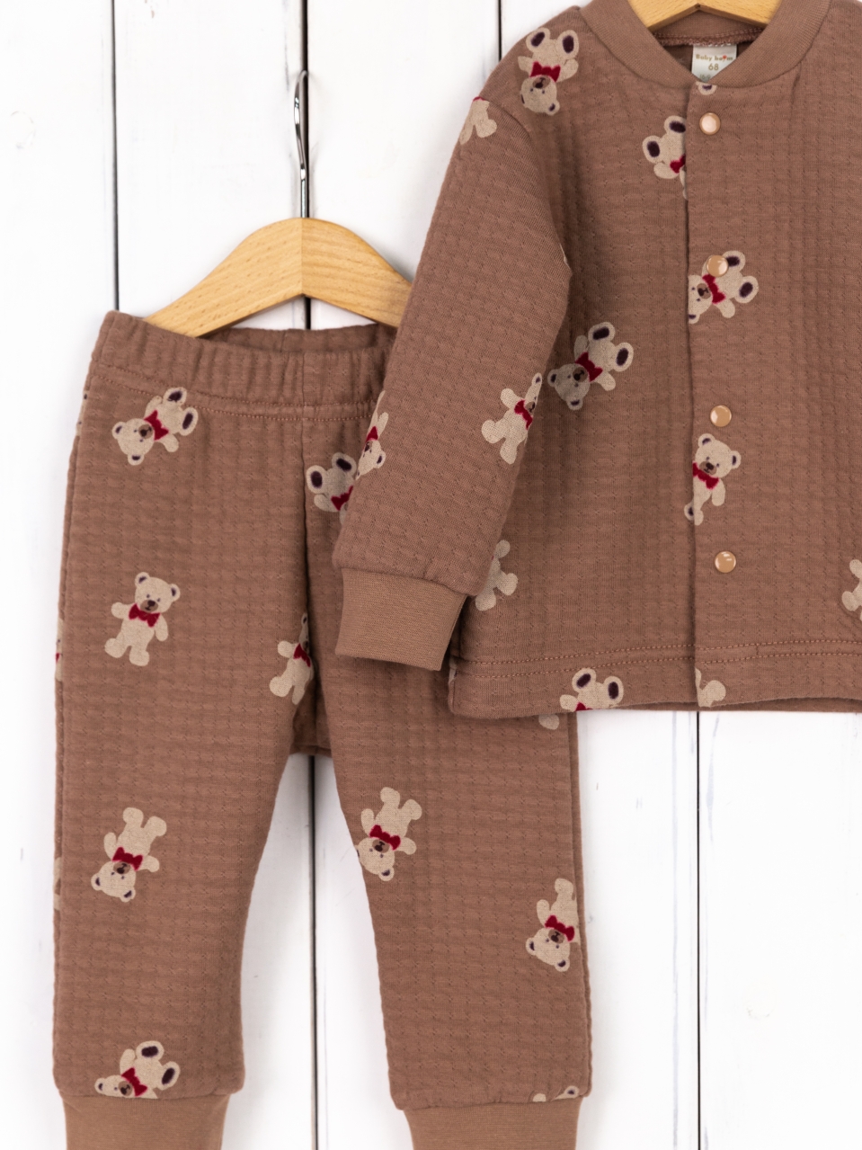 Одежда, созданная специально для самых маленьких модниц! Этот милый детский костюмчик предназначен для девочкек до 1 года и представляет собой очаровательный набор из удобной кофточки на кнопочках и мягких штанов. Качественный натуральный жаккард дарит коже мягкость и тепло, позволяя вашему ребёнку чувствовать себя комфортно целый день.