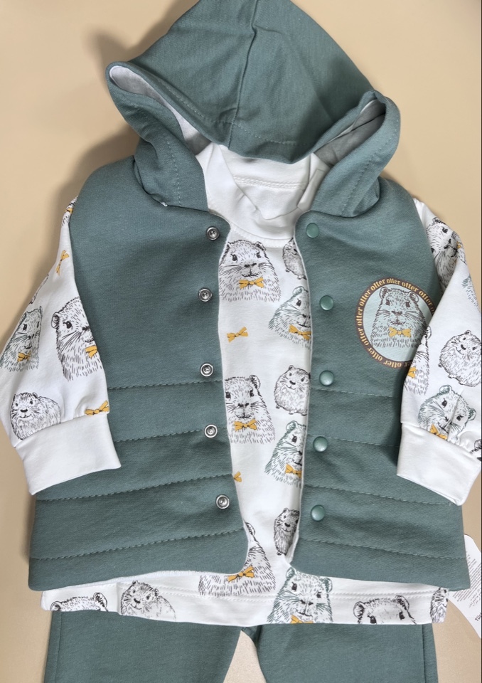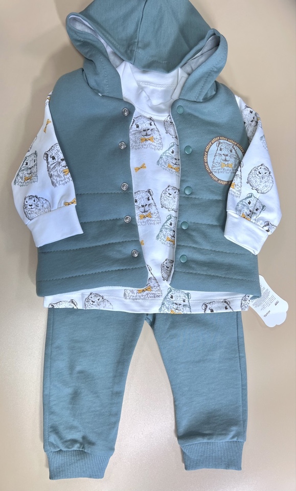 Костюм-тройка для малышей — настоящая находка заботливых родителей! В комплекте мягкая хлопковая кофточка с длинным рукавом, удобные трикотажные брючки и тёплая жилетка, которую можно носить отдельно. Натуральный состав ткани обеспечивает комфорт и безопасность для нежной кожи ребёнка.