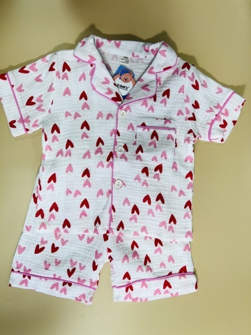 Нежная и комфортная муслиновая пижама для девочки с милым принтом сердечек — идеально подойдет для уютных ночных снов. Изготовленная из натурального муслина, она обеспечивает отличную вентиляцию и нежное ощущение на коже.