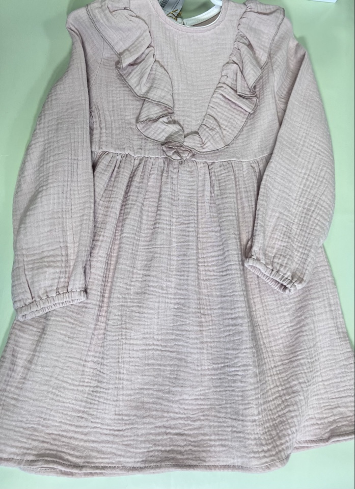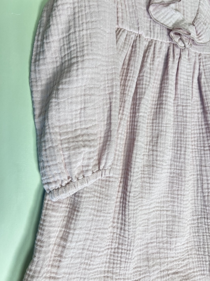 Это воздушное платье из мягкого муслина идеально подойдет для особых случаев и ежедневной носки. Длинный рукав защитит от прохладного ветерка, а нежная расцветка дополнит образ милой девочки. Элегантная длина миди создаст аккуратный и утонченный вид.