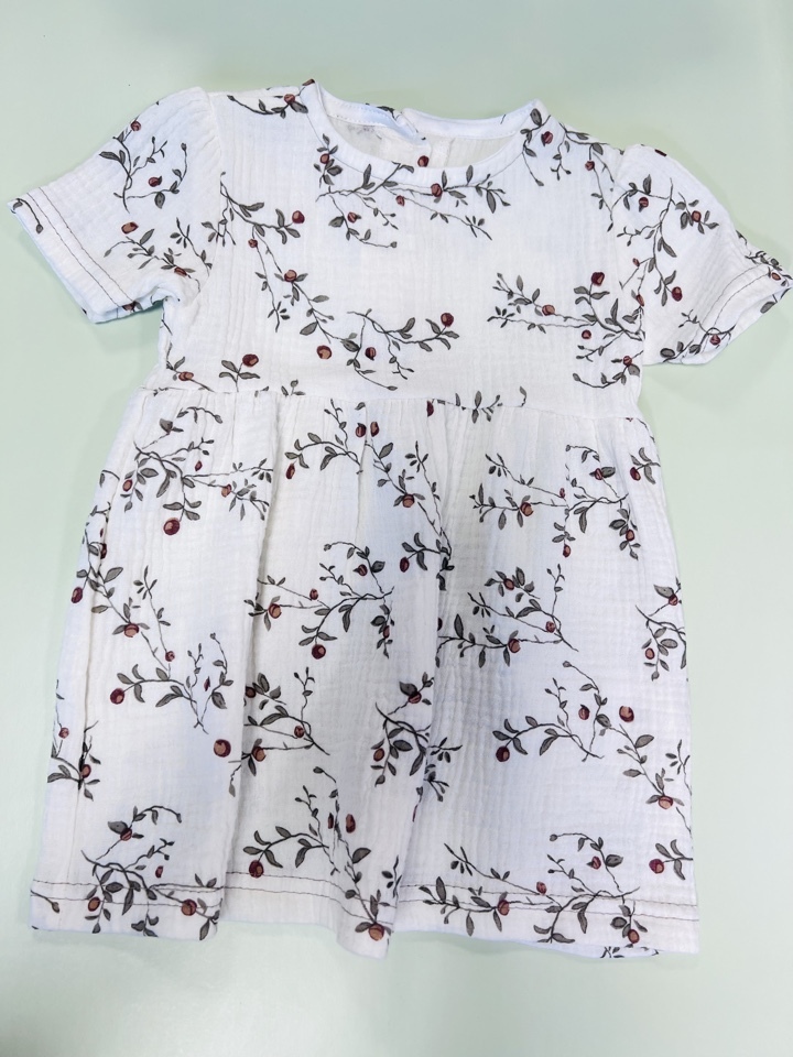 Это лёгкое и нежное платье станет любимым предметом гардероба вашей маленькой модницы. Воздушная ткань муслина обеспечивает комфорт и прохладу, позволяя коже дышать. Приятная расцветка в винтажном стиле придаст образу особый шарм.