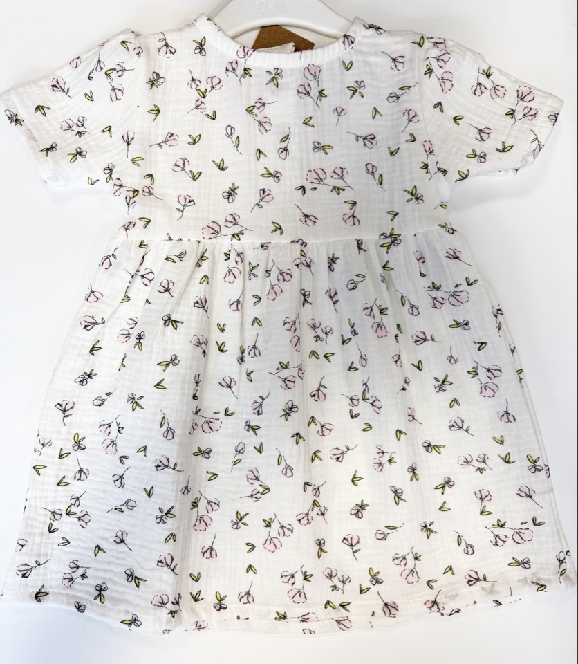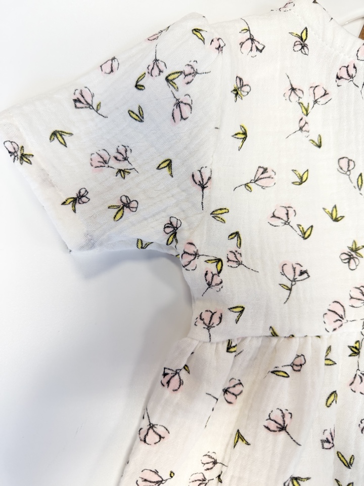 Платье муслиновое с коротким рукавом "Цветы на молоке"