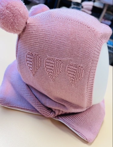 Шапка-шлем удобной посадки польского производителя. Вязаная пряжа с шерстью на хлопковом подкладе- идеальный вариант на прохладную осень. Размер подходит на малышку от 1 года до 2 лет